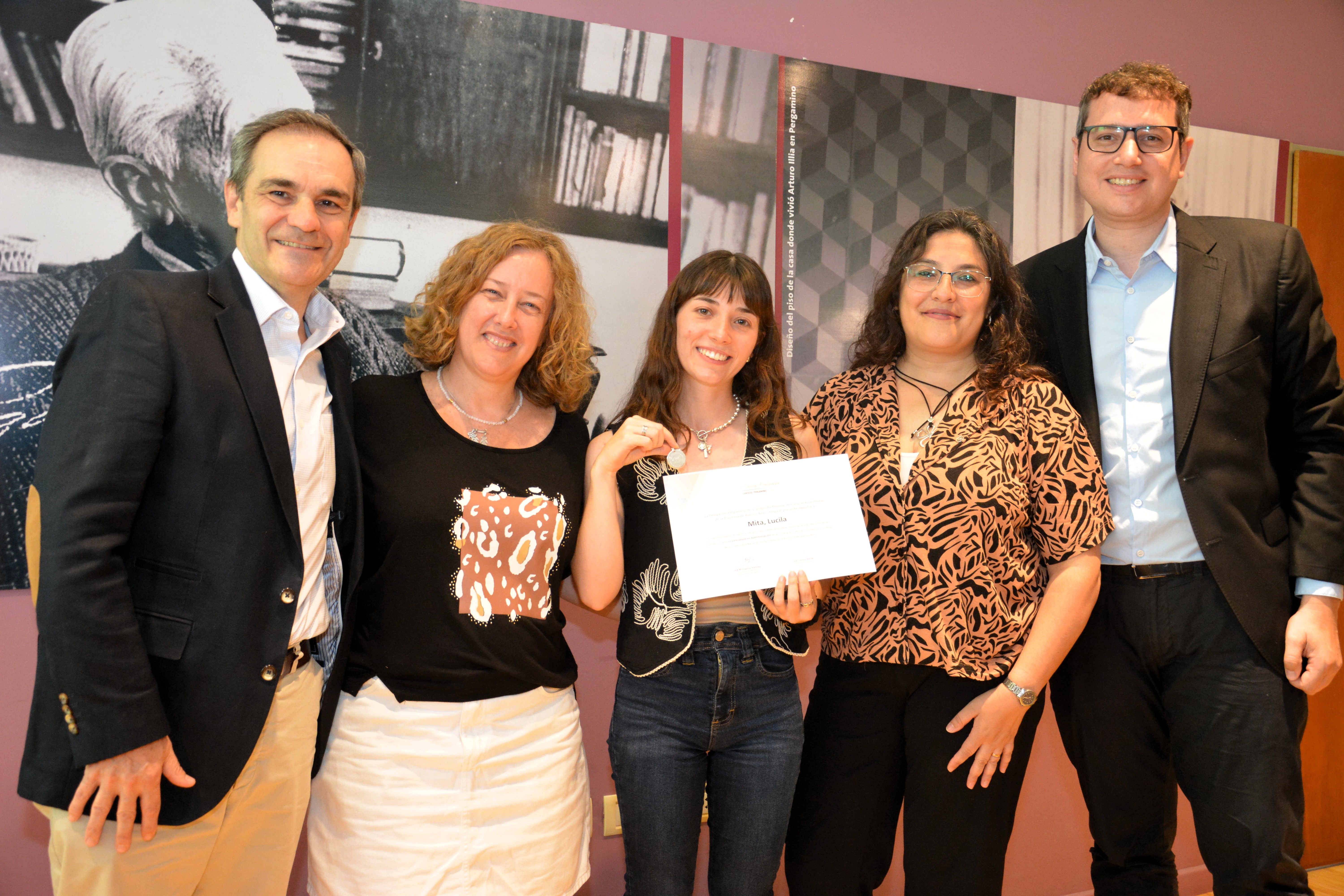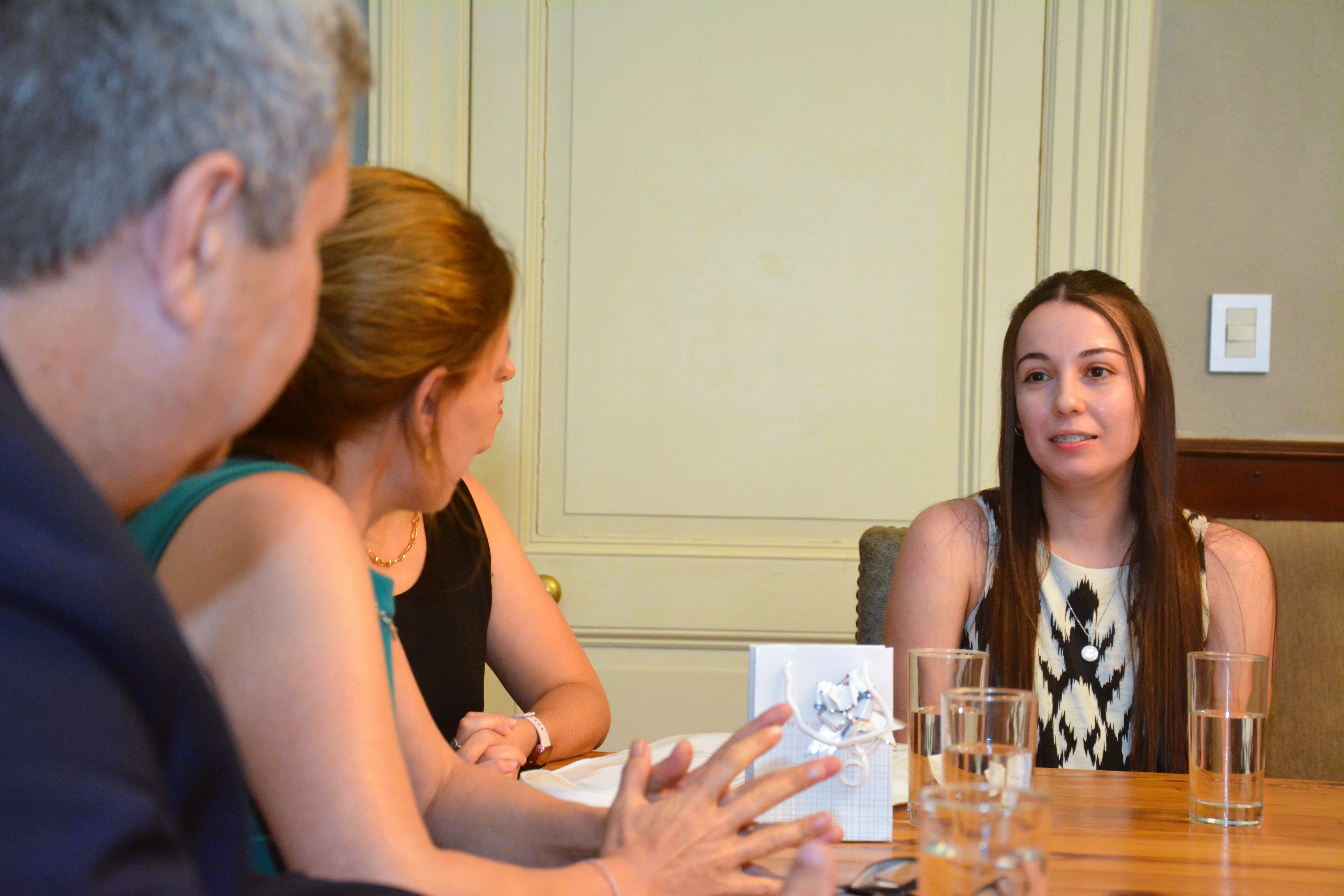 En Junín la vicerrectora, Florencia Castro recibió a la familia de Camila y a Lina Viaggio, quien estuvo en representación del Consejo Profesional de Ciencias Económicas Delegación Junín.